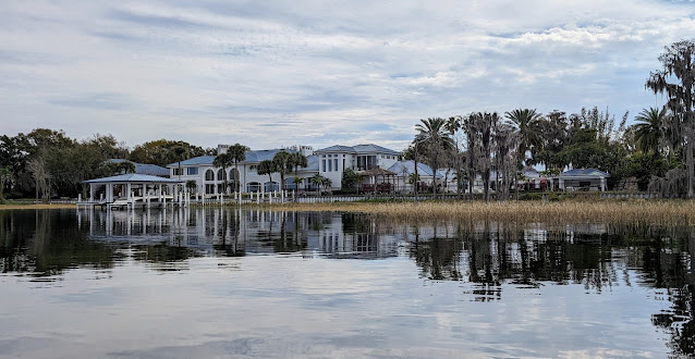 Yesterday we had a private boat ride around the Butler Chain of Lakes in Windermere. Our guides, Rick and Jerry, were the best. Young, humorous, knowledgeable and hip. They pointed out the former homes of Tiger Woods, Wesley Snipes and Shaquille O'Neal. Shaquille's home was 30,000 square feet, including a full-sized basketball court. Of course.